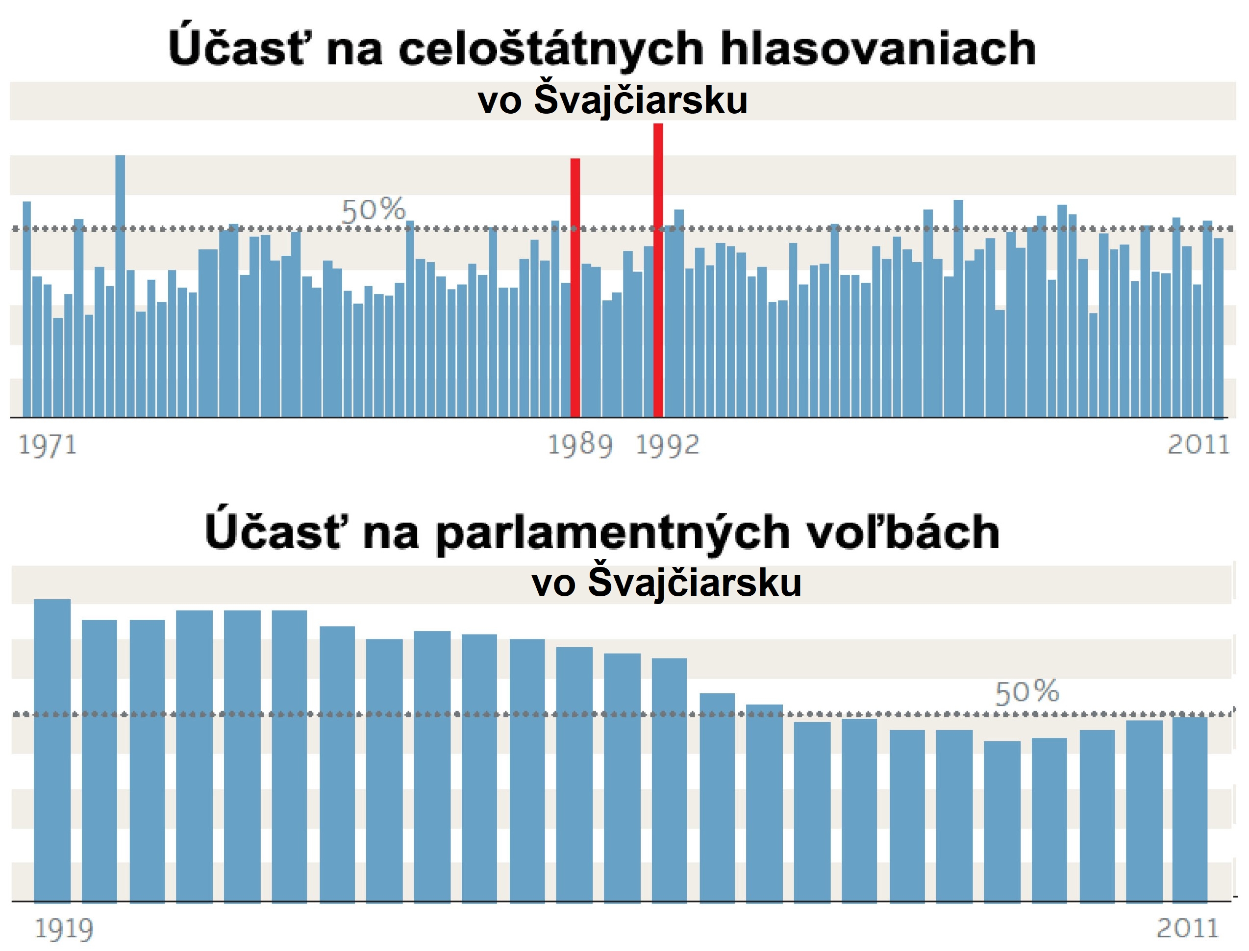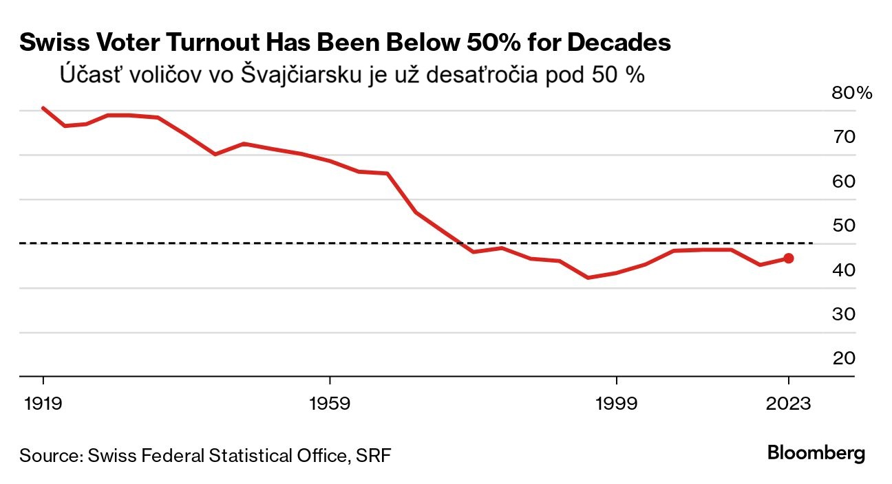 • Vo Švajčiarsku majú v referende nulové kvórum. Drvivá väčšina federálnych referend za obdobie 40. rokov bola s účasťou v priemere okolo 40-45%.